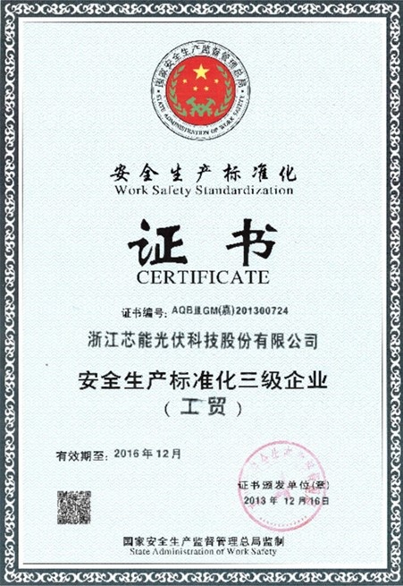 公司通過(guò)安全生產(chǎn)標(biāo)準(zhǔn)化三級(jí)驗(yàn)收 2013-12-06 00:00:00 浙江芯能光伏科技股份有限公司 Viewd 4615 PreviousNo Information Next“浙江芯能海寧市建材商貿(mào)城1.6MWp光電建筑一體化應(yīng)用示范項(xiàng)目”成功驗(yàn)收