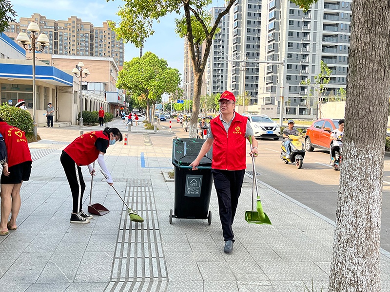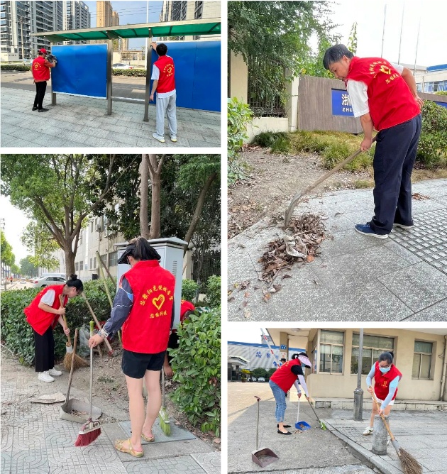 活動中,黨員志愿者們統(tǒng)一佩戴黨徽,身穿紅馬甲,手持掃帚等清潔工具,有條不紊地清除散落在路邊、綠化帶里的塑料袋、廢紙等廢棄物,并打掃了附近的公交站臺。