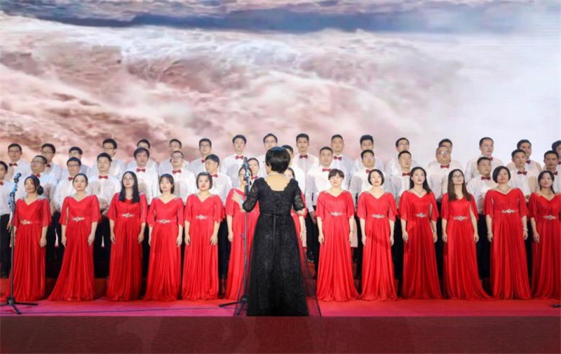 領(lǐng)導(dǎo)致辭后,年會(huì)還表演了芯能人自行編排的各類節(jié)目。2019年是祖國(guó)成立70周年的華誕,演出以大合唱《我和我的祖國(guó)》拉開序幕,由公司管理層、黨員、青年代表共同演繹??陡偶ぐ旱母杪曊故玖诵灸軋F(tuán)隊(duì)的飽滿精神和高度凝聚力。