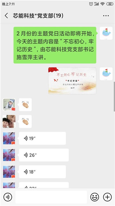 2月24日晚上19:00,在堅(jiān)持依法防控、理性防控,努力實(shí)現(xiàn)疫情防控“狙擊戰(zhàn)”和企業(yè)復(fù)工復(fù)產(chǎn)有序進(jìn)行的雙目標(biāo)下,芯能科技黨支部在特殊時(shí)期依舊嚴(yán)格按照上級(jí)要求不畏困難開展主題黨日活動(dòng),本次黨員活動(dòng)采取特殊的形式:黨支部書記充分利用微信平臺(tái)講課的方式,既避免了人員過度集中,又能讓所有黨員聆聽書記講堂的內(nèi)容。市派黨建指導(dǎo)員殷建偉也參加了本次活動(dòng)。