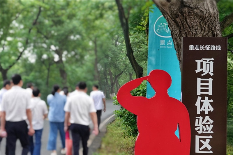 隨后,黨員們前往錢江百里長廊紅色教育基地,快速徒步8公里,體驗當年紅軍行軍的艱辛,也在此過程中感嘆新時代美好生活的來之不易,珍惜浪花淘盡英雄換來的幸福時刻。看錢江潮水滾滾而過,緬懷仁人志士前赴后繼的奉獻精神?!靶坳P漫道真如鐵,而今邁步從頭越?!奔t軍就是憑著堅定的意志和信念,走過萬里長征路,最終才取得革命勝利。每一次傾聽歷史,總能獲得前行的動力,黨員們的信仰也愈加堅定。