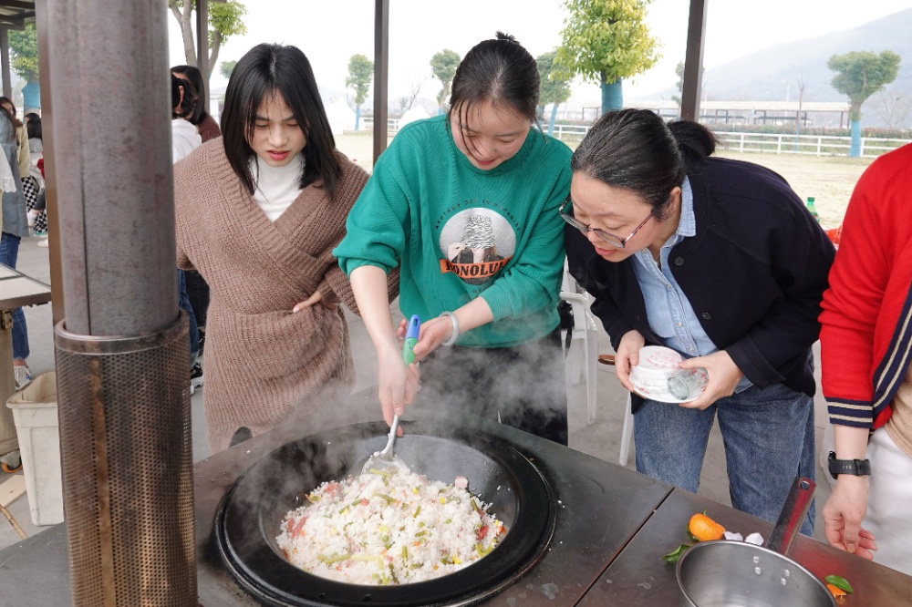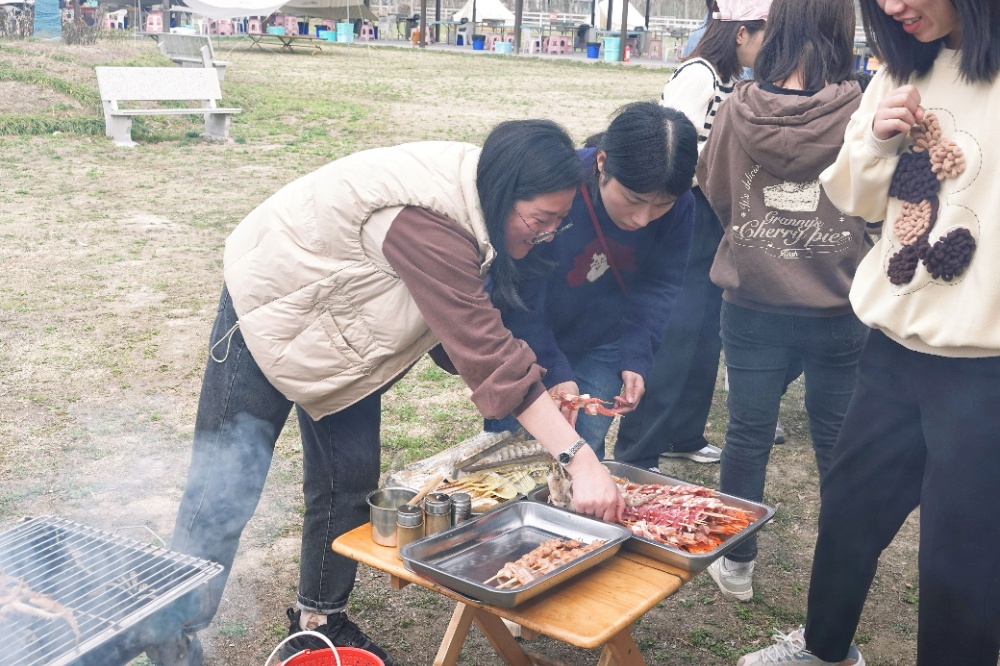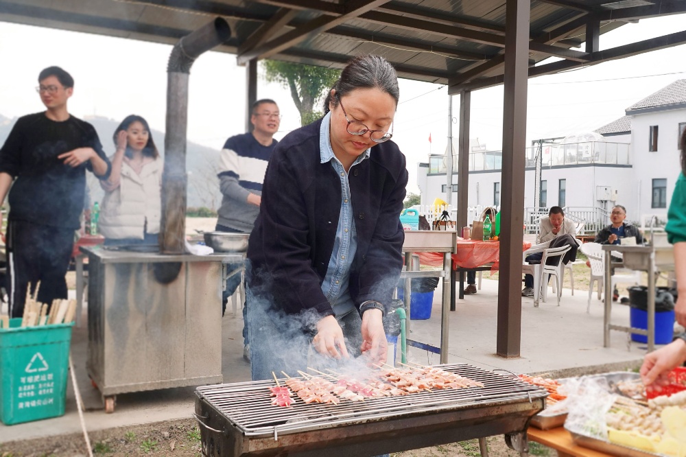 上午十點(diǎn)左右,女職工們抵達(dá)尖山野炊營(yíng)地,農(nóng)場(chǎng)風(fēng)景宜人,舒適愜意。活動(dòng)在一陣忙碌和一片歡聲笑語(yǔ)中拉開(kāi)了帷幕,洗米煮飯、生火燒烤……大家分工協(xié)作,各展所能,歡聲笑語(yǔ)不斷,各種食材在空氣中釋放香味并互相滲透,伴隨著裊裊炊煙,融匯出一幅最美"人間煙火"。