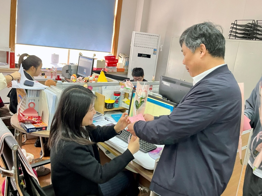 一大早,工會(huì)主席金治明及工會(huì)委員便深入各部門(mén),向在崗的每一位女職工送去鮮花、禮品和節(jié)日問(wèn)候,以此傳遞美滿(mǎn)、健康、快樂(lè)的美好寓意。一朵朵美麗芬芳的鮮花,一句句溫馨真誠(chéng)的祝福,使女職工們切身感受到了大家庭的溫暖和關(guān)愛(ài)。