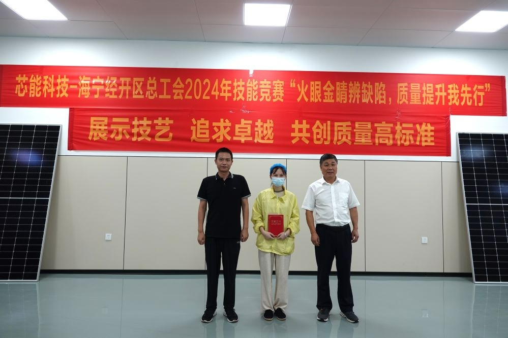 2024年9月10日至12日,芯能科技工會(huì)在海寧經(jīng)濟(jì)開發(fā)區(qū)總工會(huì)指導(dǎo)下,于芯能科技綠色能源產(chǎn)業(yè)園內(nèi)成功舉辦了以“火眼金睛辨缺陷,質(zhì)量提升我先行”為主題的勞動(dòng)技能競(jìng)賽。此次質(zhì)量檢驗(yàn)技能競(jìng)賽旨在響應(yīng)“做好新時(shí)代人才工作”的號(hào)召,以提升員工專業(yè)技能素養(yǎng)、培養(yǎng)智能化操作人才為目標(biāo),助力公司組件生產(chǎn)高質(zhì)量、精細(xì)化發(fā)展。