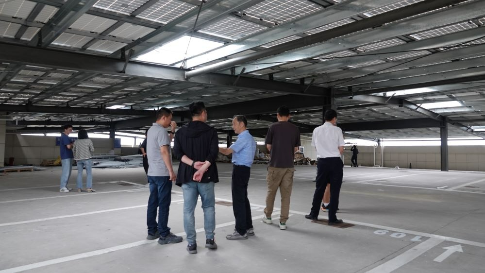 會后,黨員們實地參觀了廠區(qū)光伏車棚。整齊排列的光伏板既為車輛遮陰,又持續(xù)輸送清潔電力,成為企業(yè)綠色發(fā)展的亮眼名片。其高效、整潔、與廠區(qū)環(huán)境融為一體的設計,直觀印證了項目合作的顯著成效。