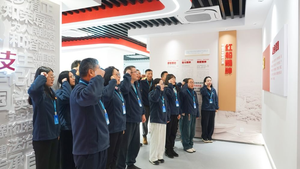 學(xué)習(xí)結(jié)束后,全體黨員移步剛落成的黨建展廳,在鮮紅黨旗下莊嚴(yán)宣誓,重溫入黨誓詞。大家透過老照片和文字回顧支部自成立以來的發(fā)展歷程,從老辦公區(qū)到智慧產(chǎn)業(yè)園,從本地市場到輻射全國,黨員們在光影中感受組織成長,在新家園里堅定前行方向。